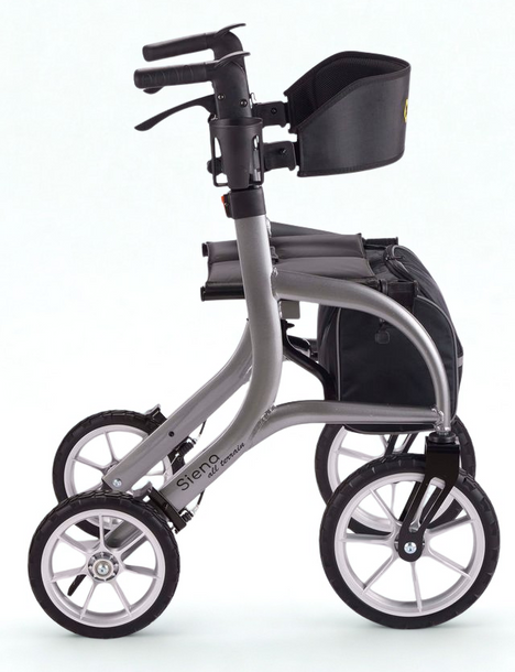 The Comodita Siena All Terrain Rollator Walker is built for users who want confidence, stability, and comfort in every step—indoors and outdoors. Designed with extra-large 12" and 10" wheels and ultra-soft, solid PU tires, the Siena handles rough surfaces with ease while delivering a smooth ride without the maintenance of pneumatic tires.
